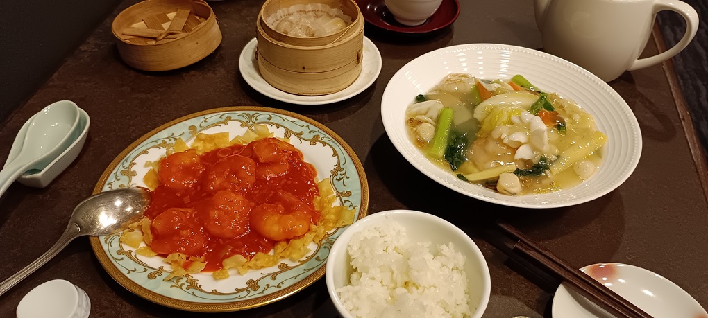 東京都心と比べて、厚木は物価が安いので、少し奮発しました。レンブラントホテル内にいくつかレストランがあるのですが、中華にしました。2000円で、サラダ、焼売、手ごろなサイズのメイン2品、杏仁豆腐。お茶も上品な味。新宿、渋谷だと4000円弱の価値はあります。