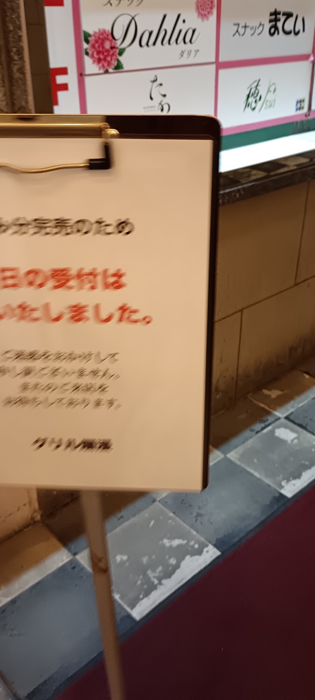 ゴーストタウン中心部でも、いくつかの店は繁盛しています。一つは、キチン南蛮の「直ちゃん」19時前に入店したのですが、完売になりました。